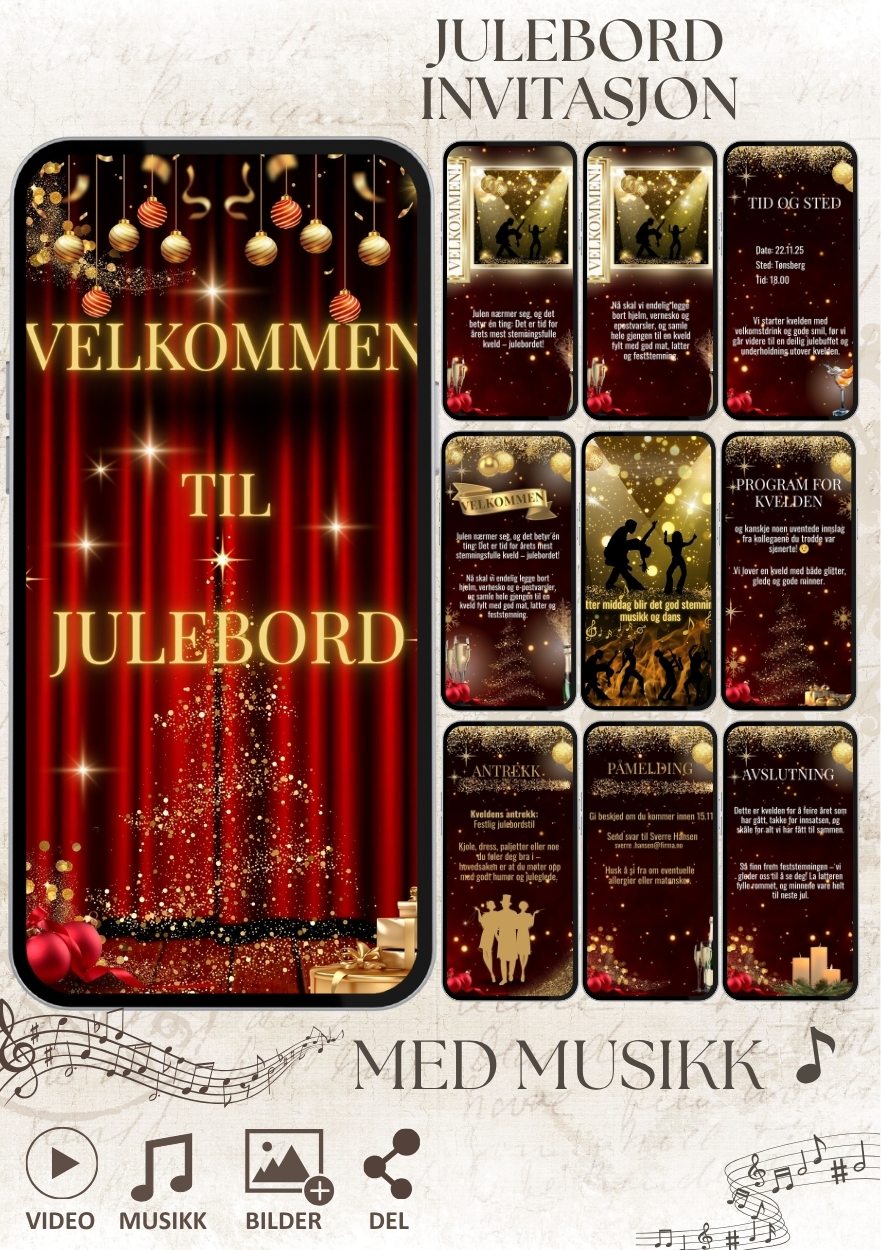 videoinvitasjon til alle gjestene. Med egen tekst, personlige bilder og musikk,