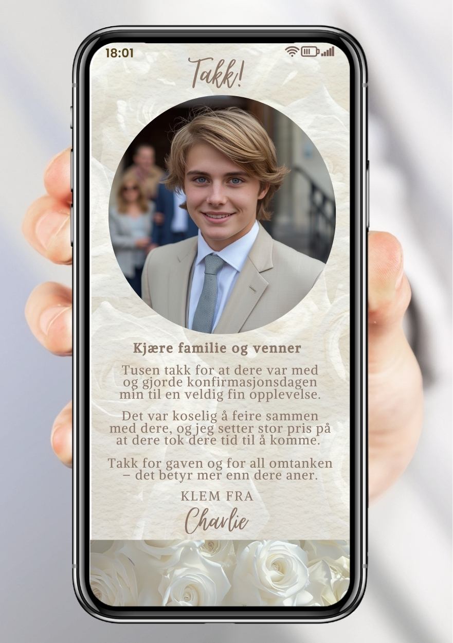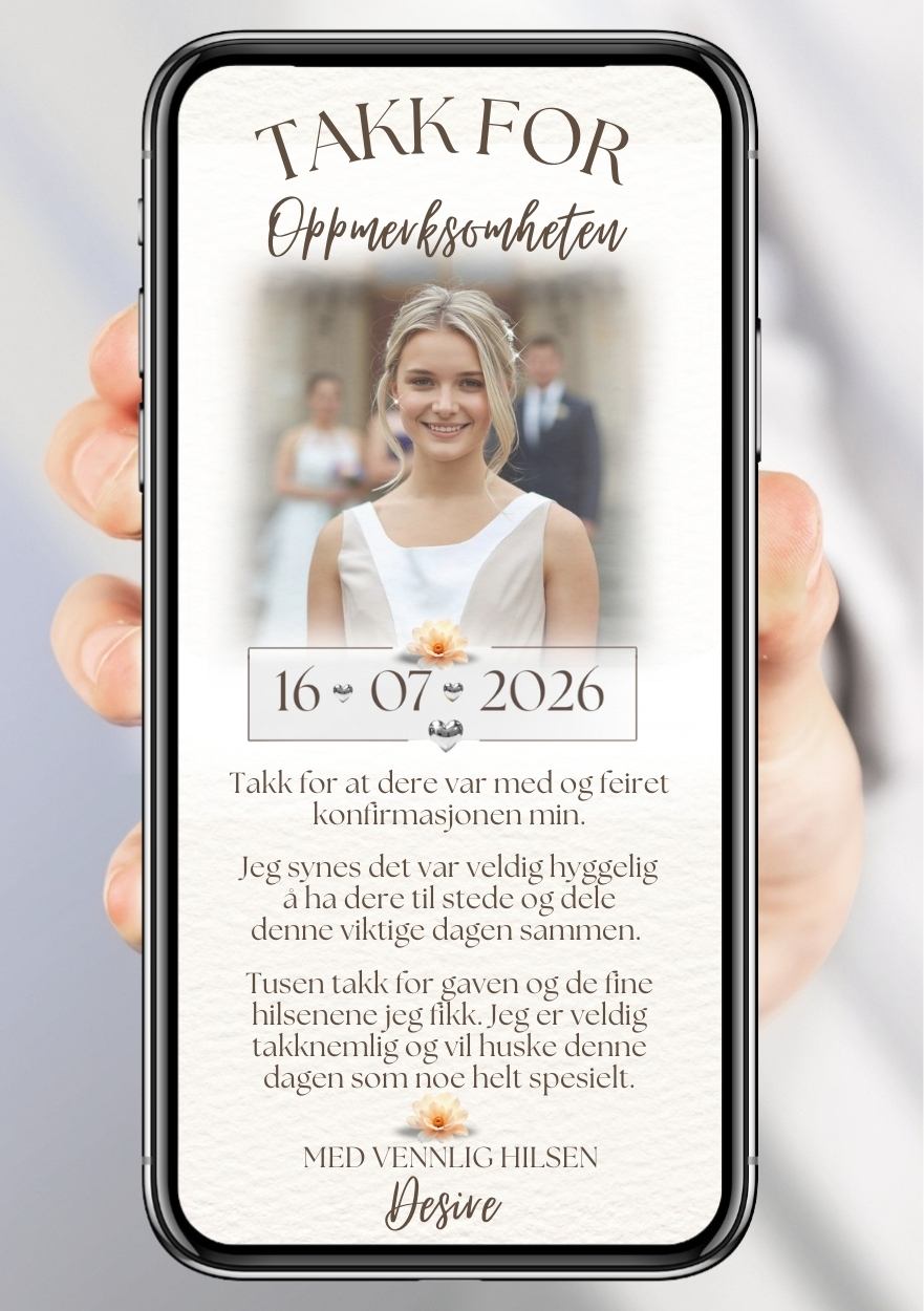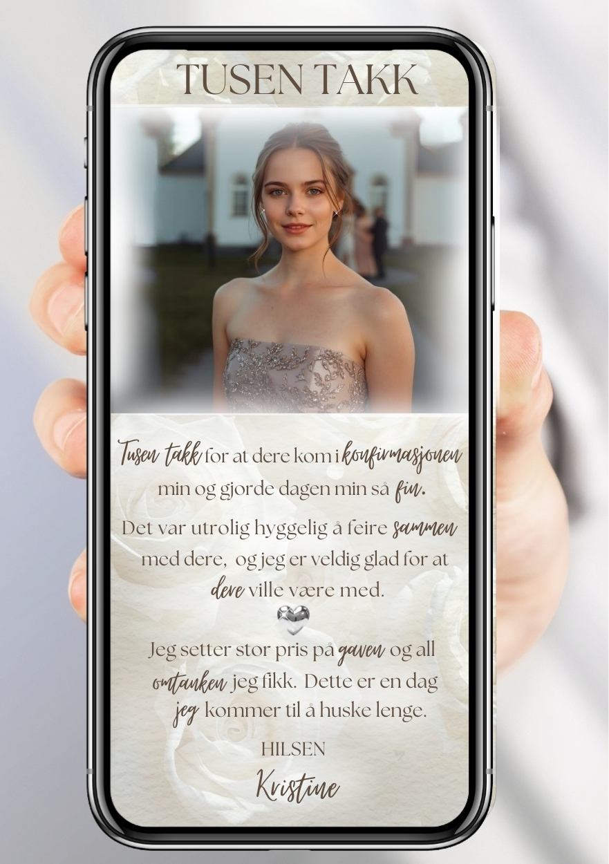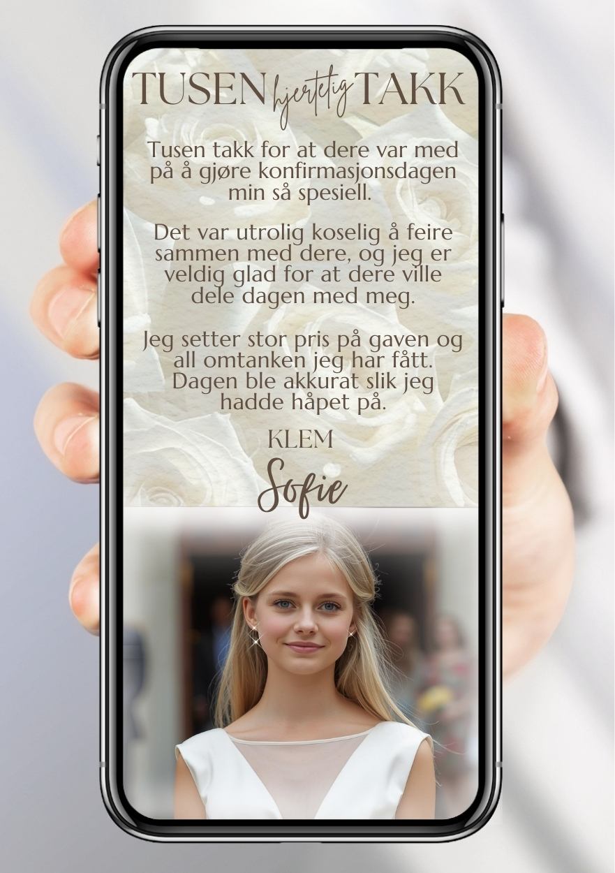 Gjør det enkelt å sende ut invitasjoner og takkekort til dåp, konfirmasjon eller bryllup – direkte til gjestenes mobil.Helt uten skjulte kostnader: Kortene sendes raskt og effektivt til alle mottakere samtidig, uten behov for trykk, pakking eller postlegging.