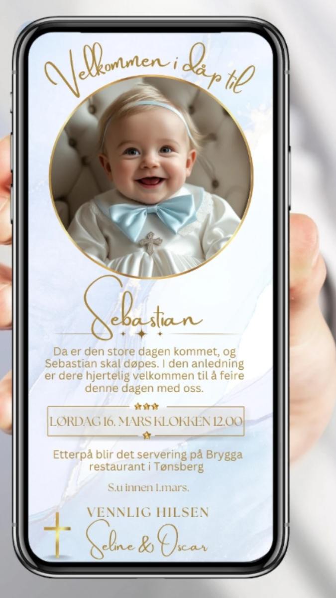 Tusen takk for god hjelp 🥰 og et utrolig flott design på vår invitasjon til dåpen! 💖