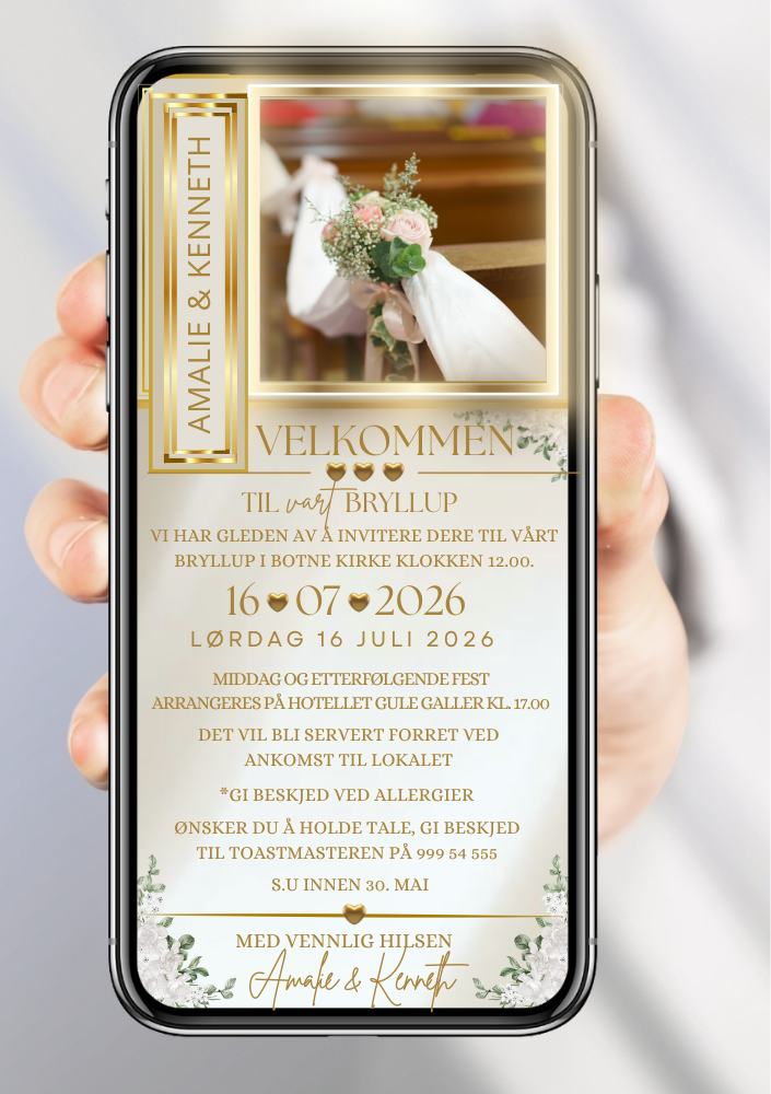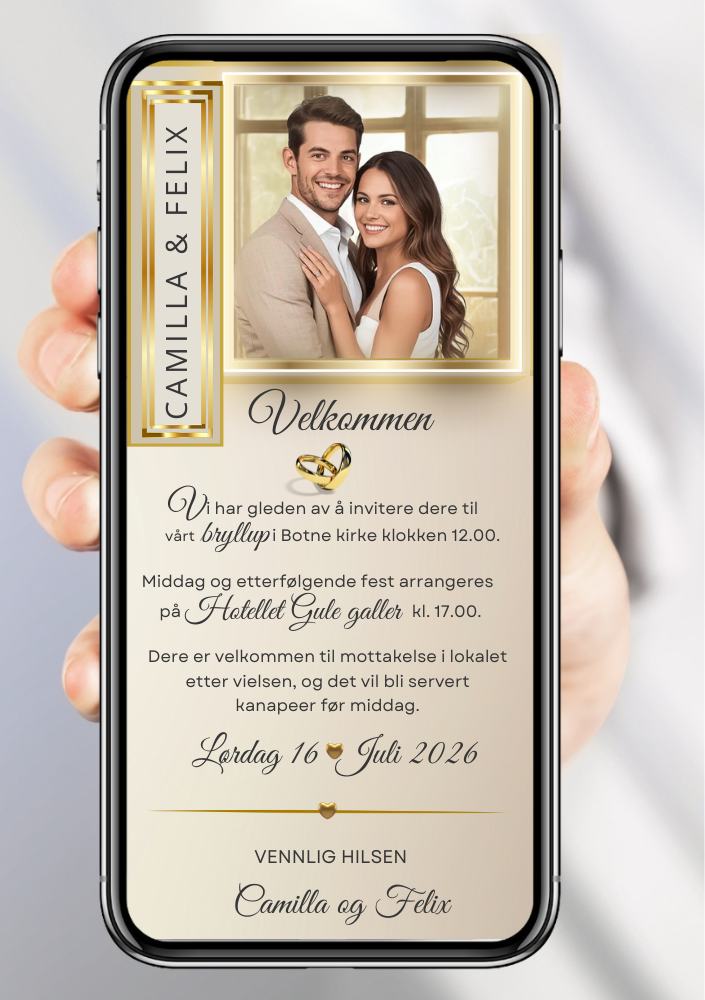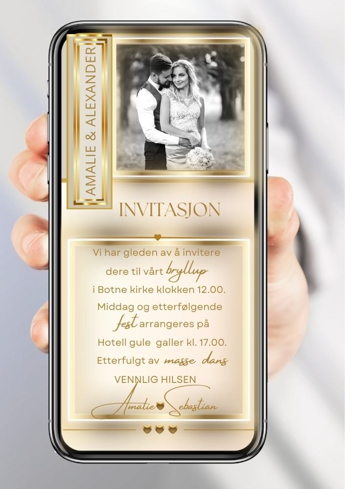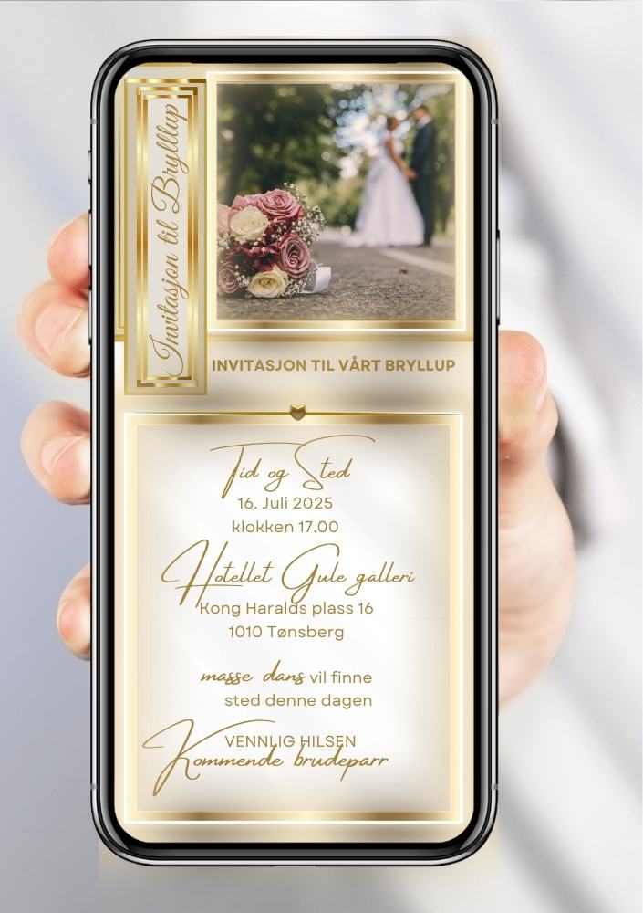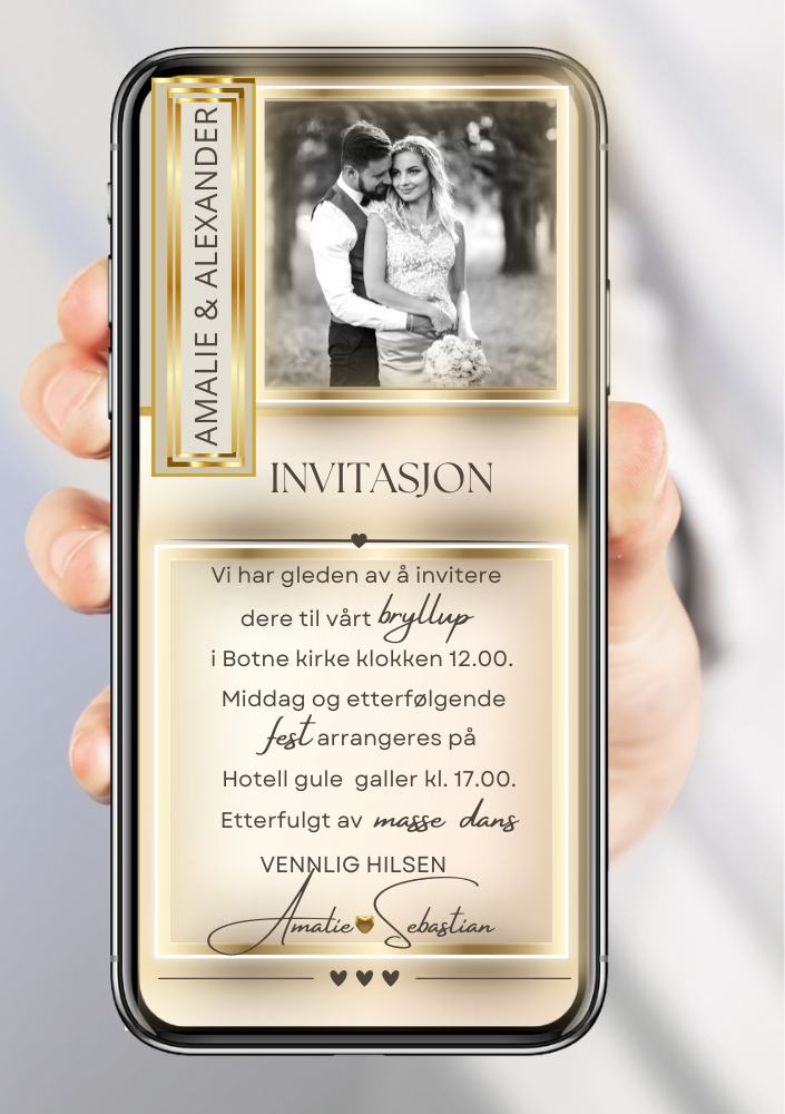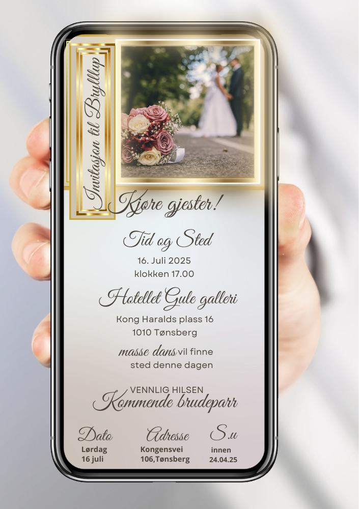 - Invitasjon i valgt størrelse, tekst, design og eget bilde.
