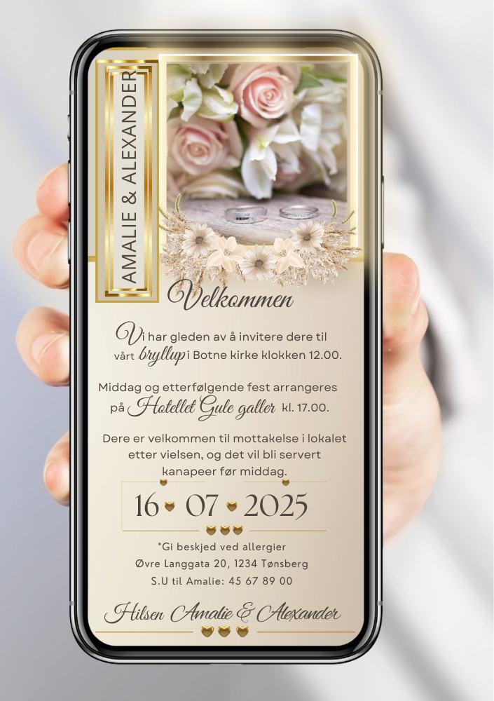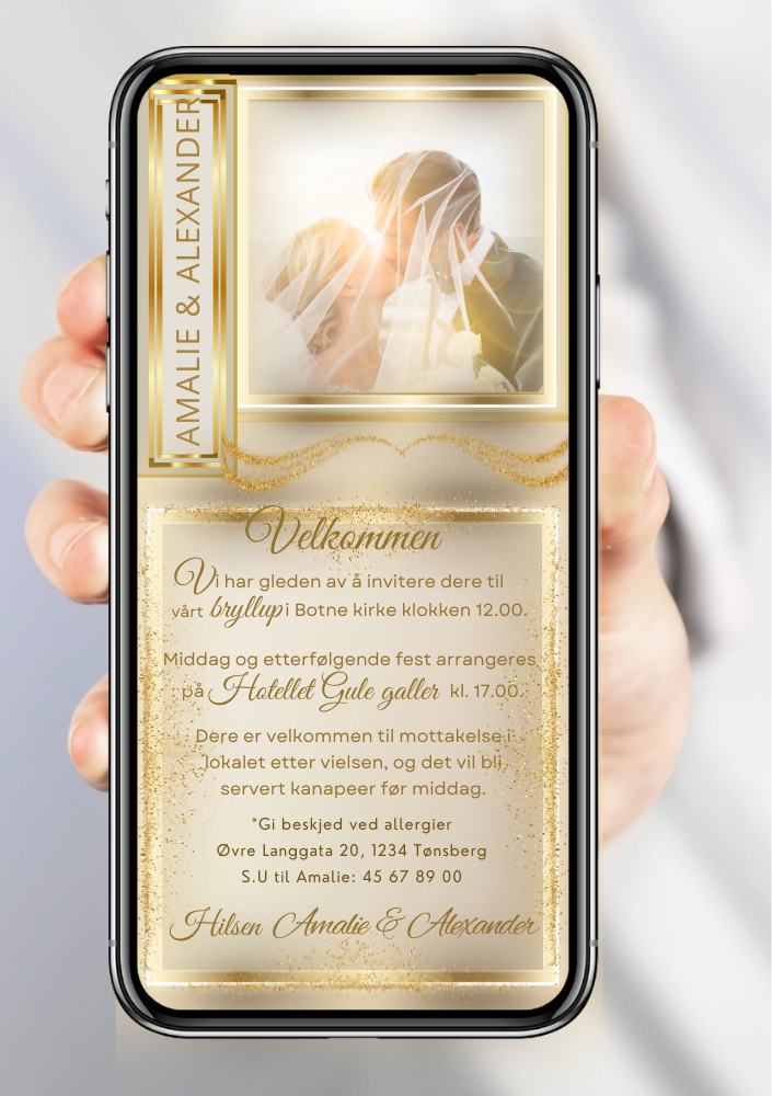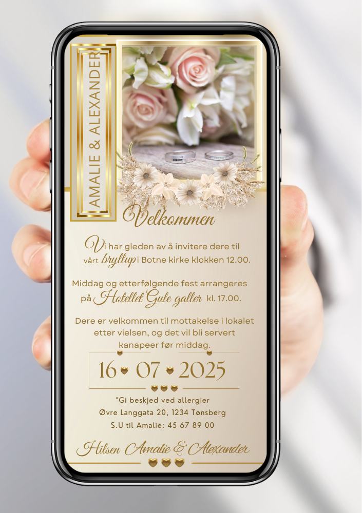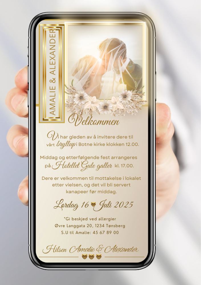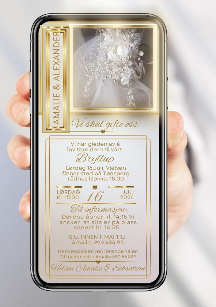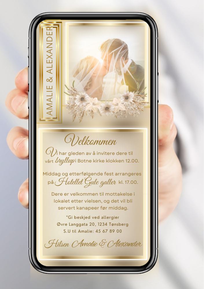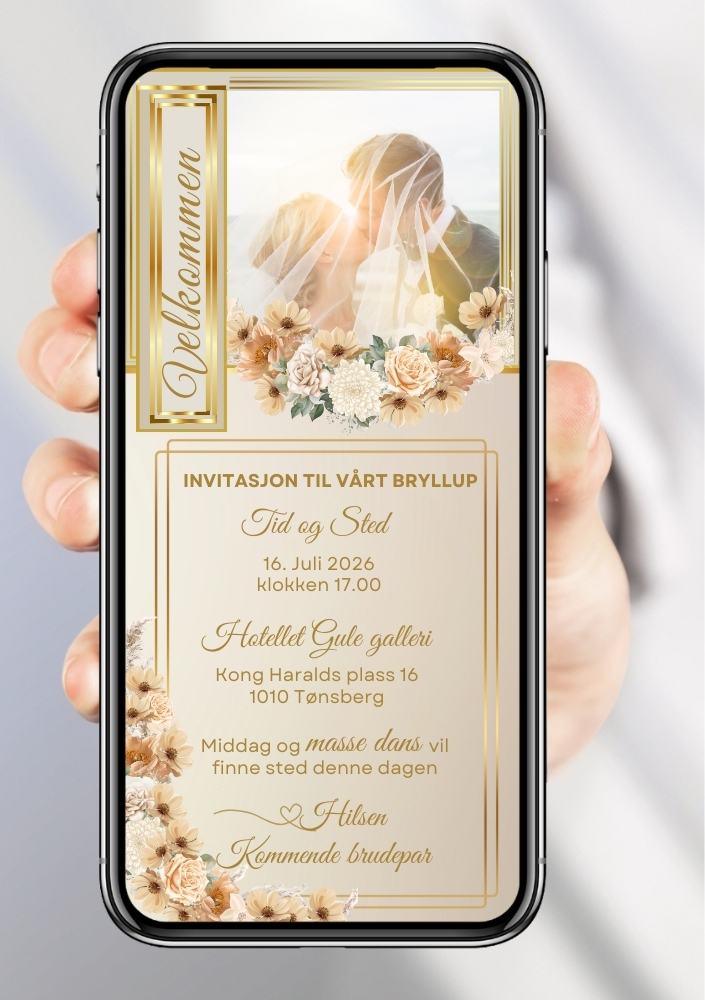 - Invitasjon i valgt størrelse, tekst, design og eget bilde.