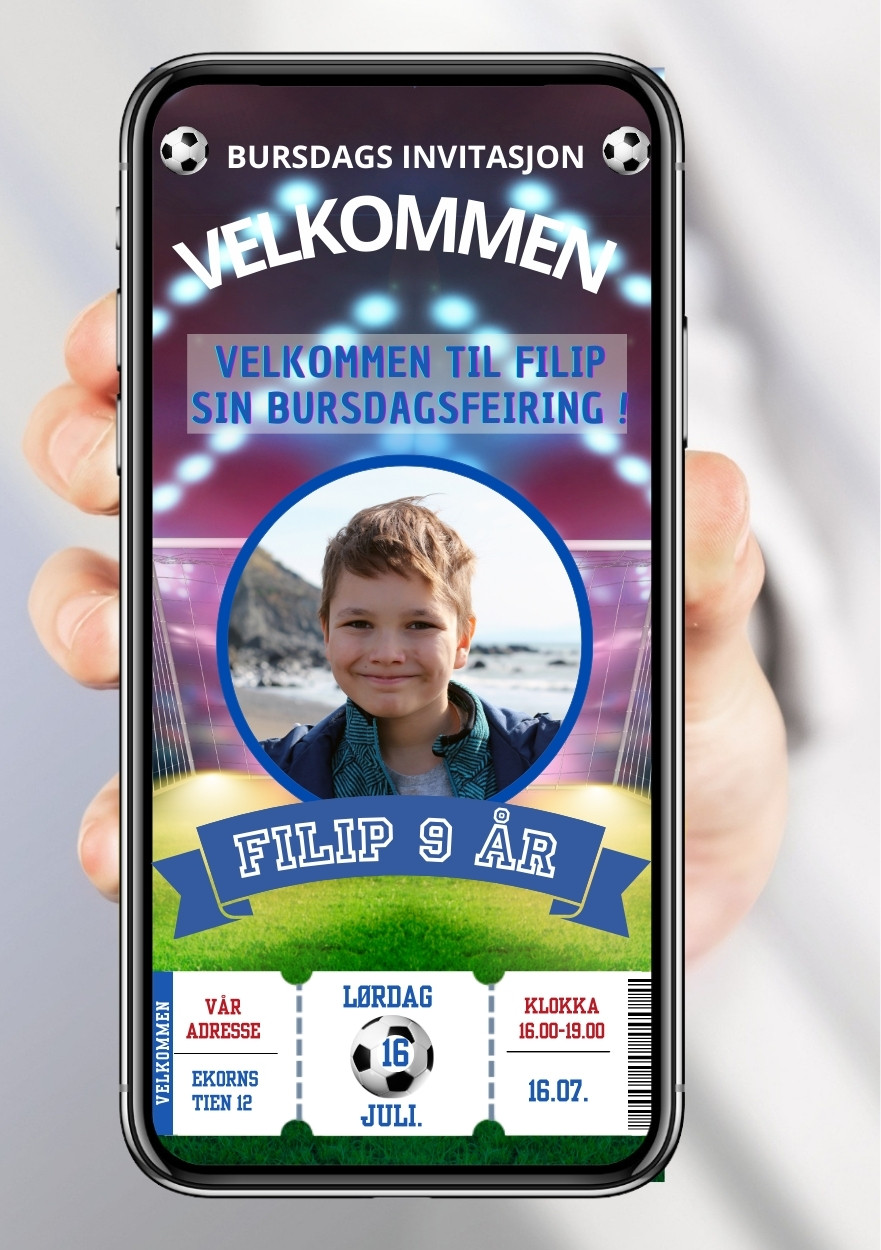 • Bursdagsinvitasjon i valgt størrelse, med tekst og design.