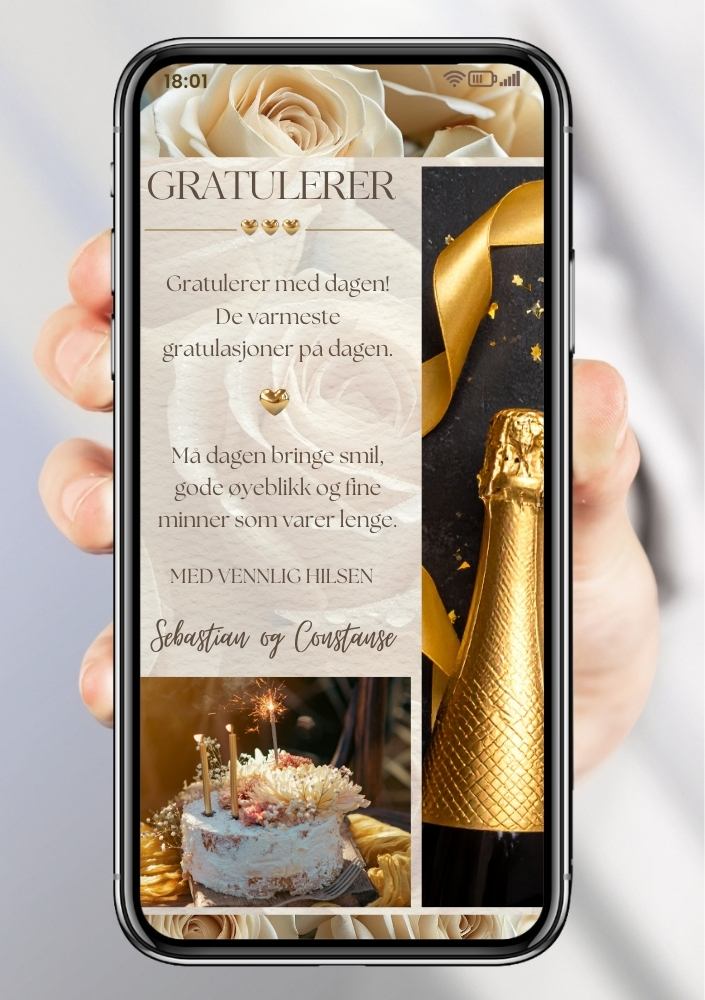 • Kort tilpasset med egen tekst og eventuelt personlige bilder (dersom du har valgt det)