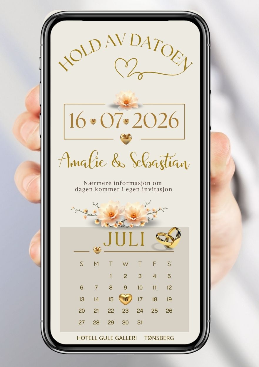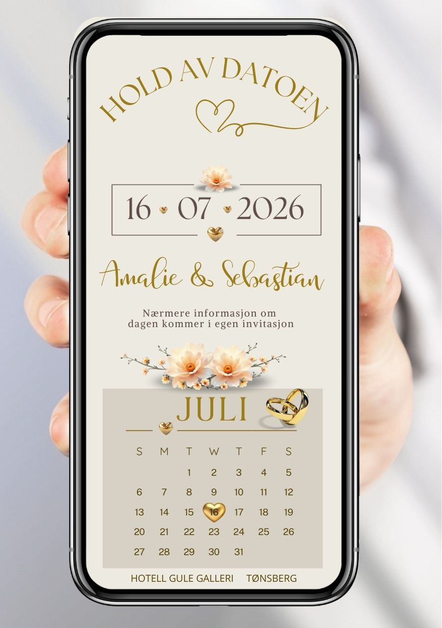 Minn alle gjestene på det kommende bryllupet neste år. Hold av dagen for bryllup!