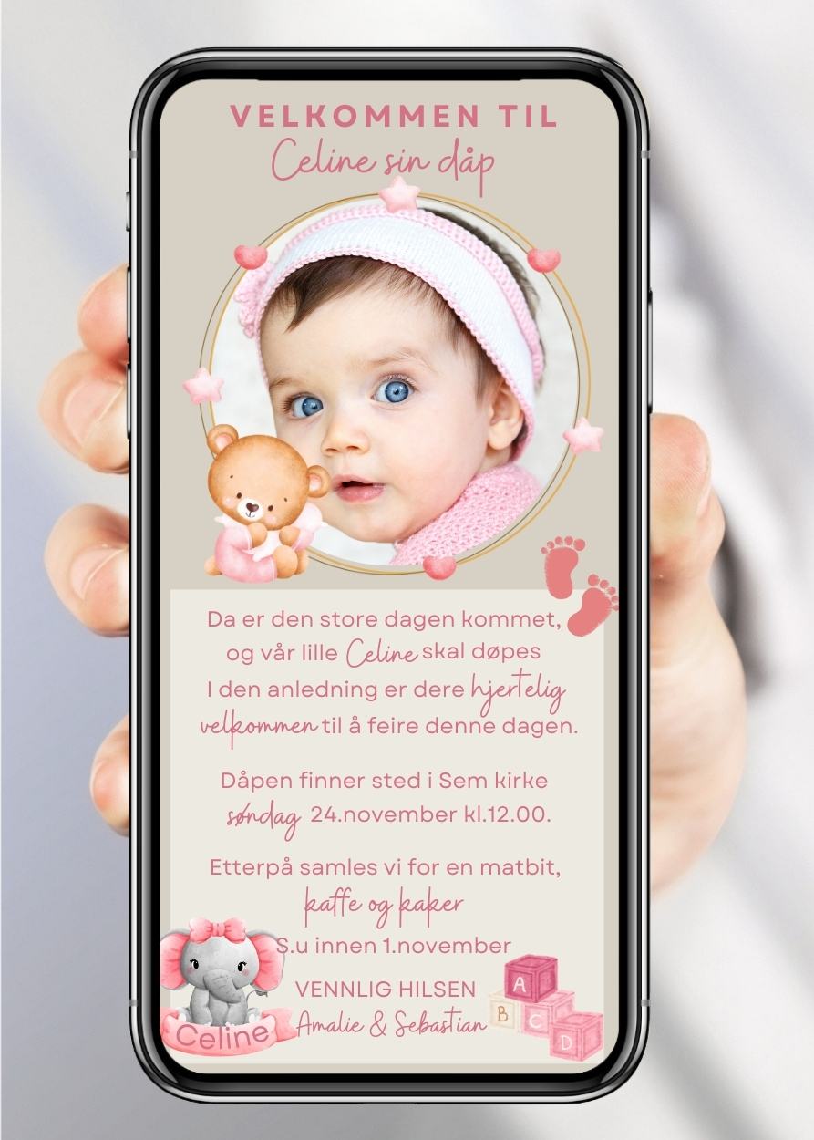 Dåp i vente? Gjør invitasjonen enkel og miljøvennlig. Send invitasjonen digitalt, rett til gjestenes mobil!