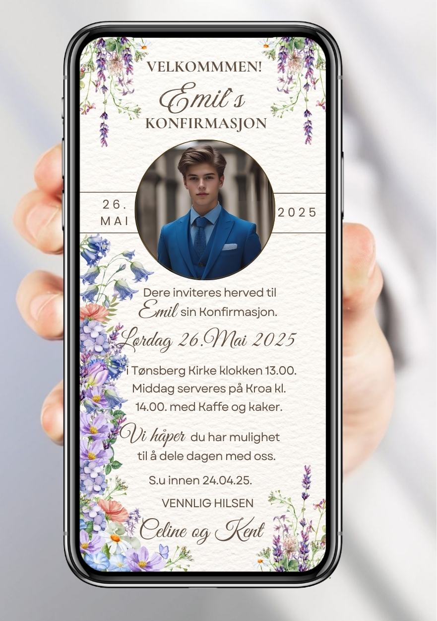 • Invitation in selected size, text, design and photo.
