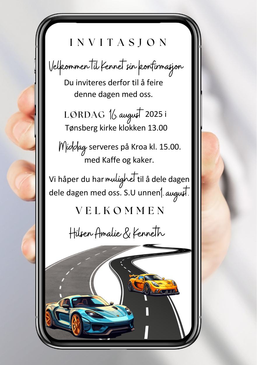 • Invitation in selected size, text and design