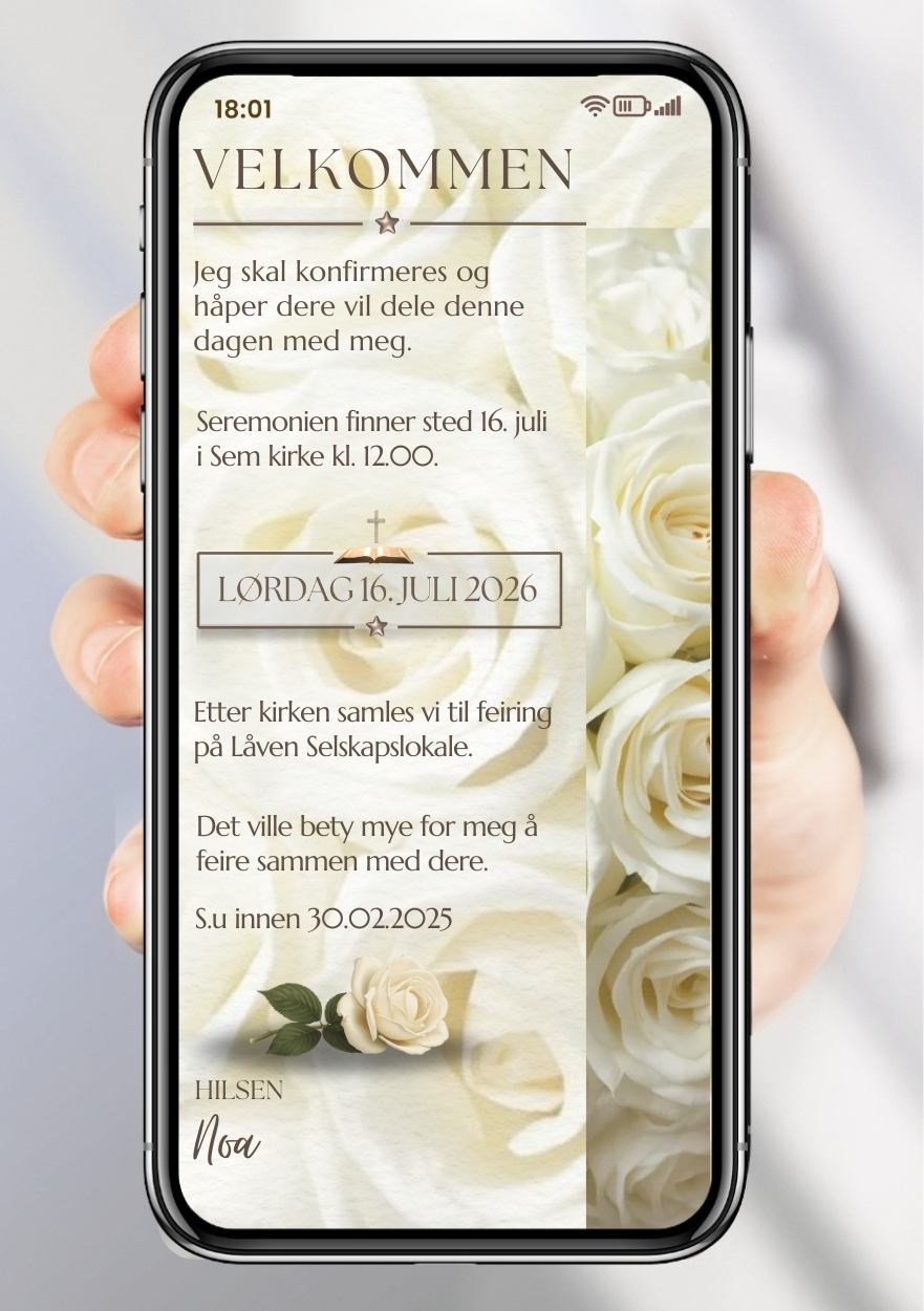 - Invitation in selected size, text og design.