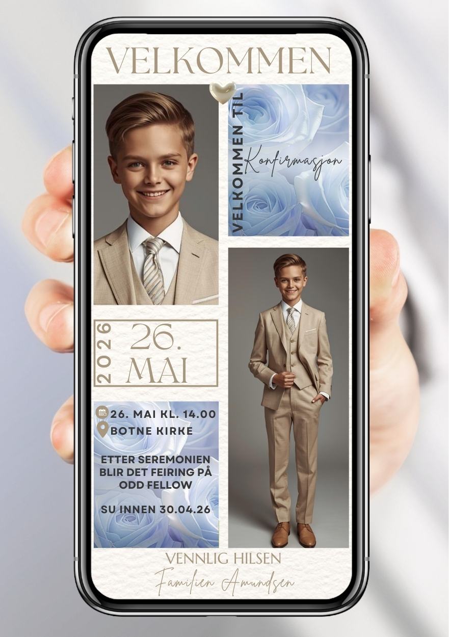 - Invitasjon i valgt størrelse, tekst, design og bilde.