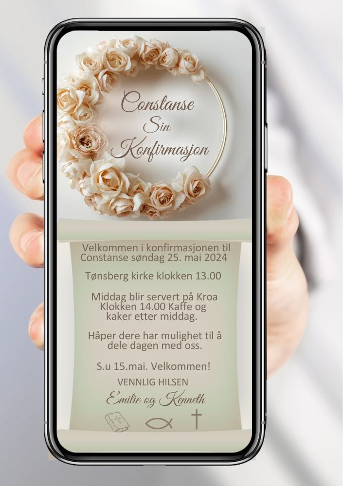 • Invitasjon i valgt størrelse, tekst, design og bilde.