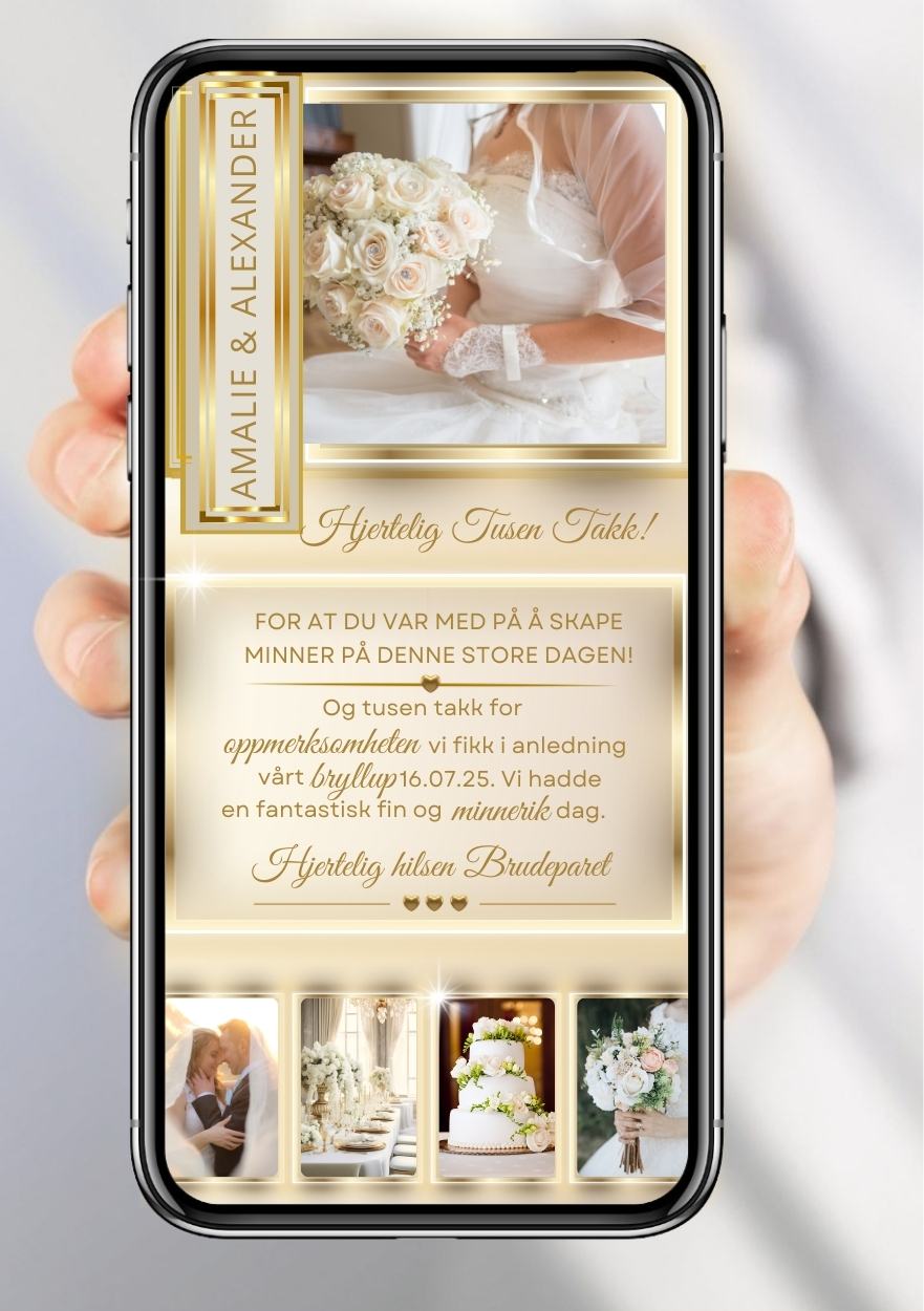 - Takkekort i valgt størrelse og design med egen tekst og bilder.