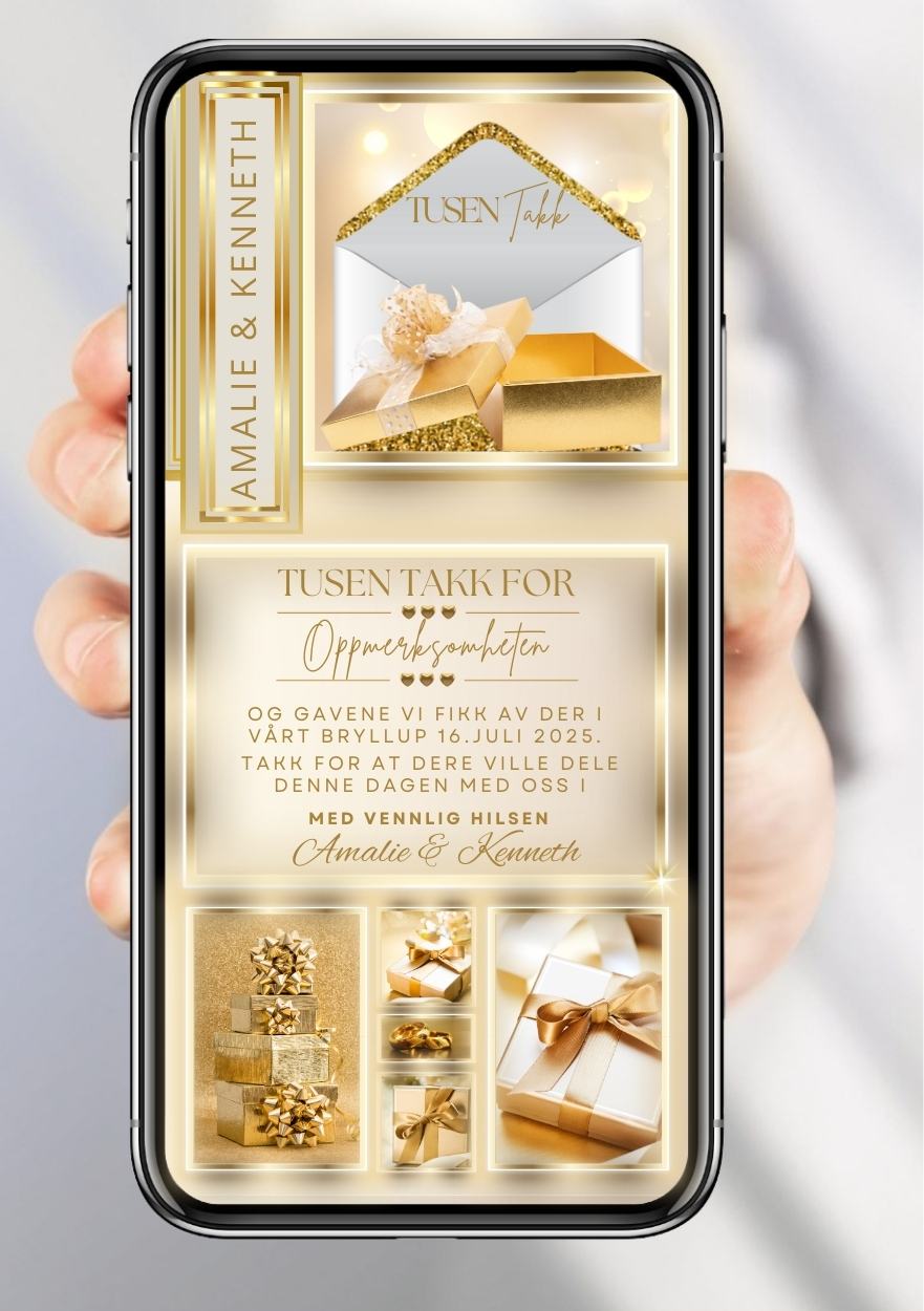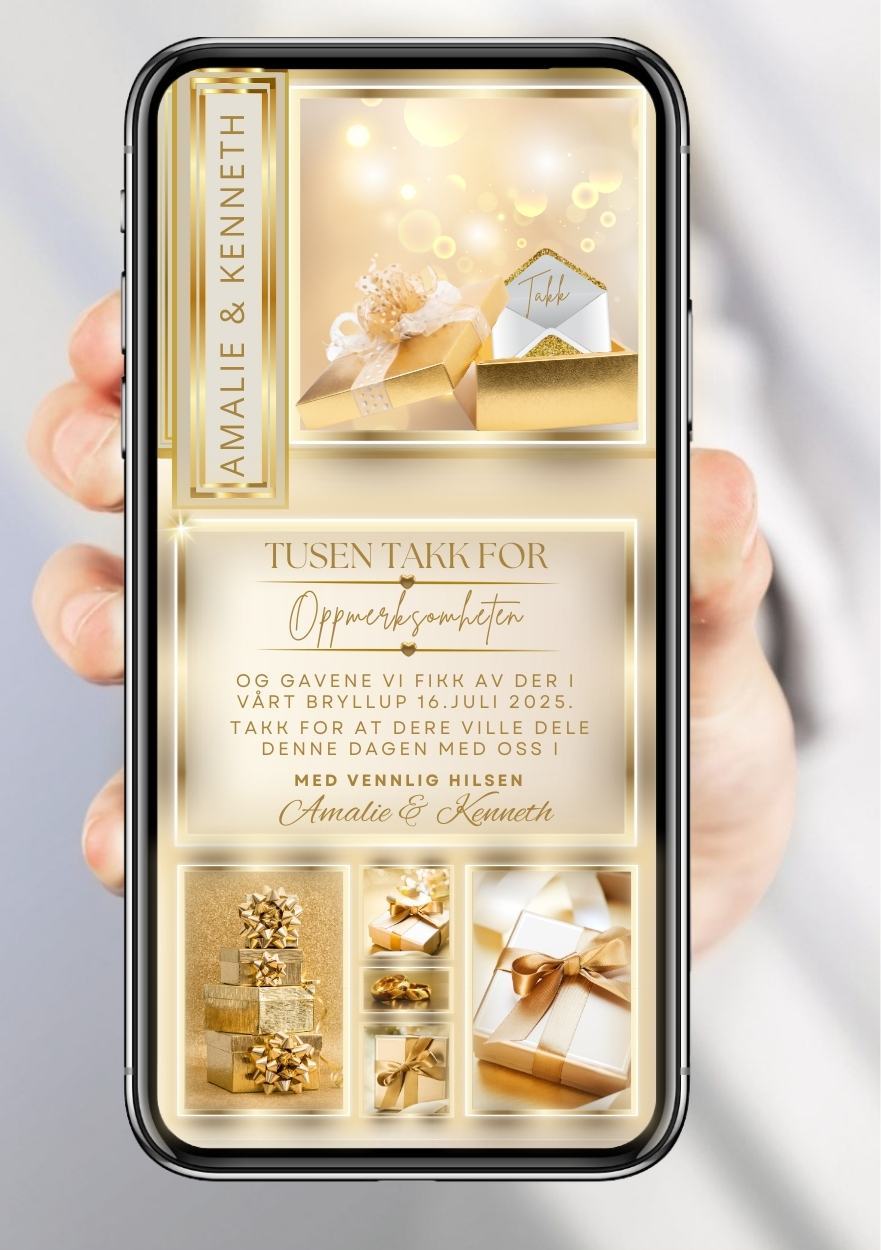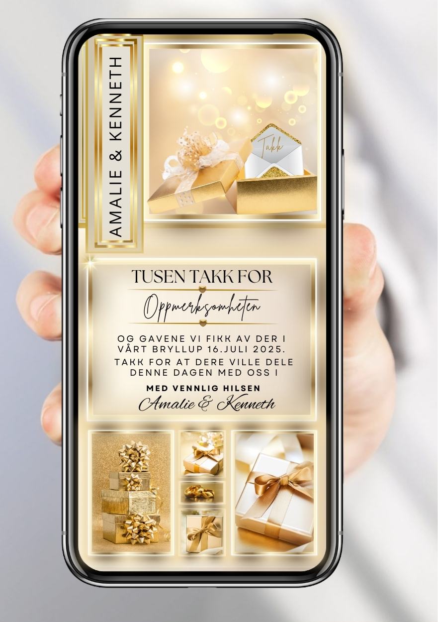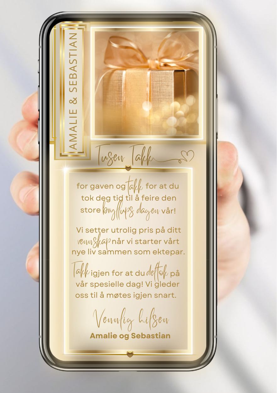 - Takkekort i valgt størrelse og design med egen tekst.