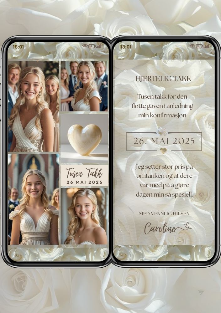 - Takkekort i valgt størrelse og design med egen tekst og bilde.