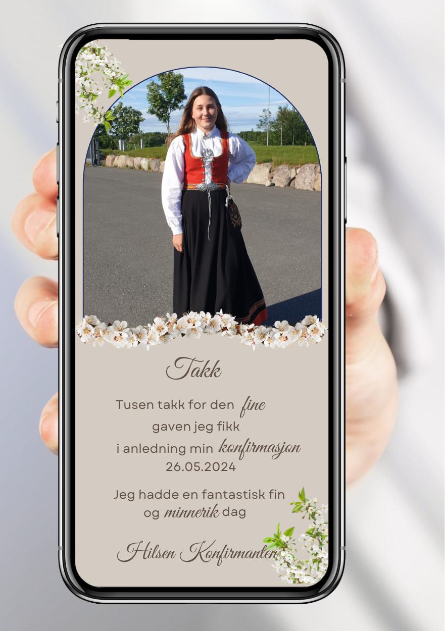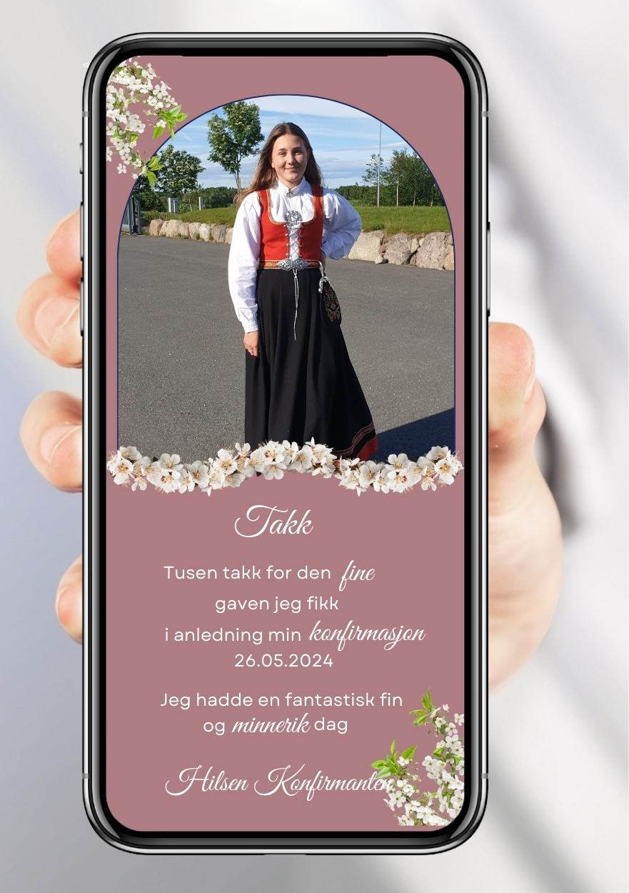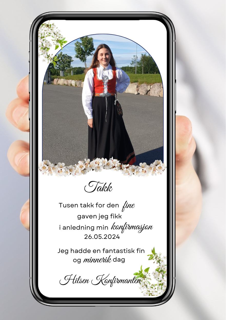 Send familie og venner takkekort på mobilen, etter endt konfirmasjons feiring.