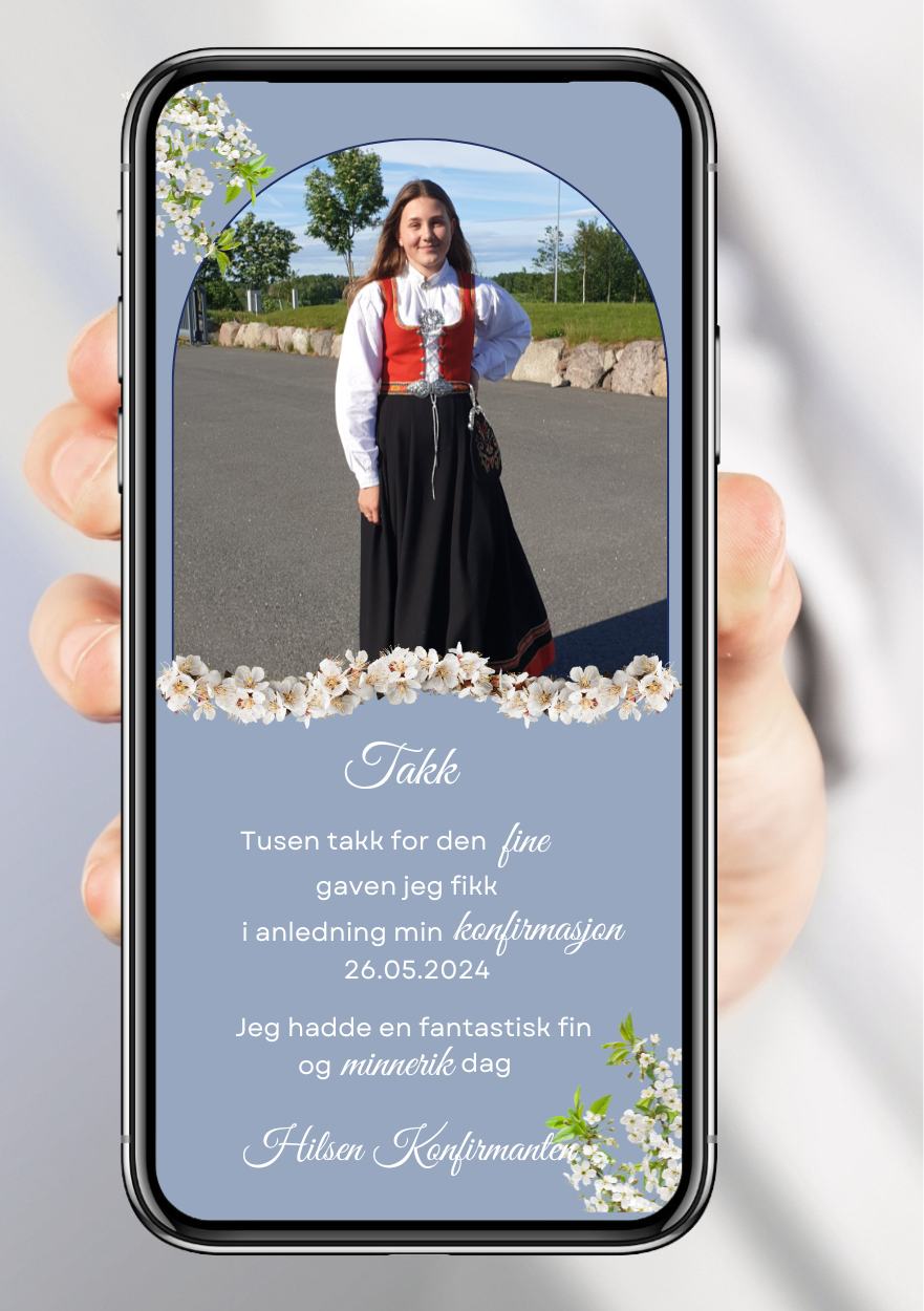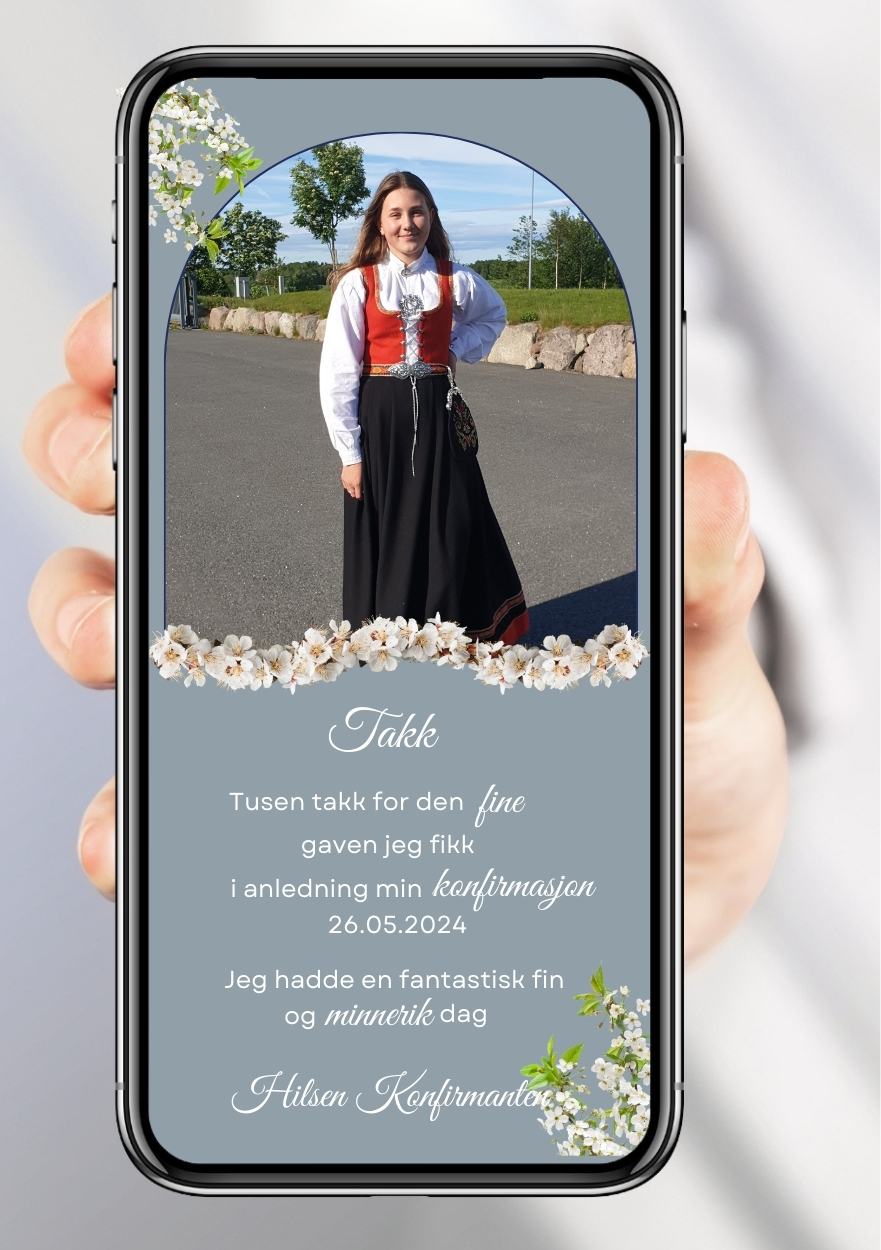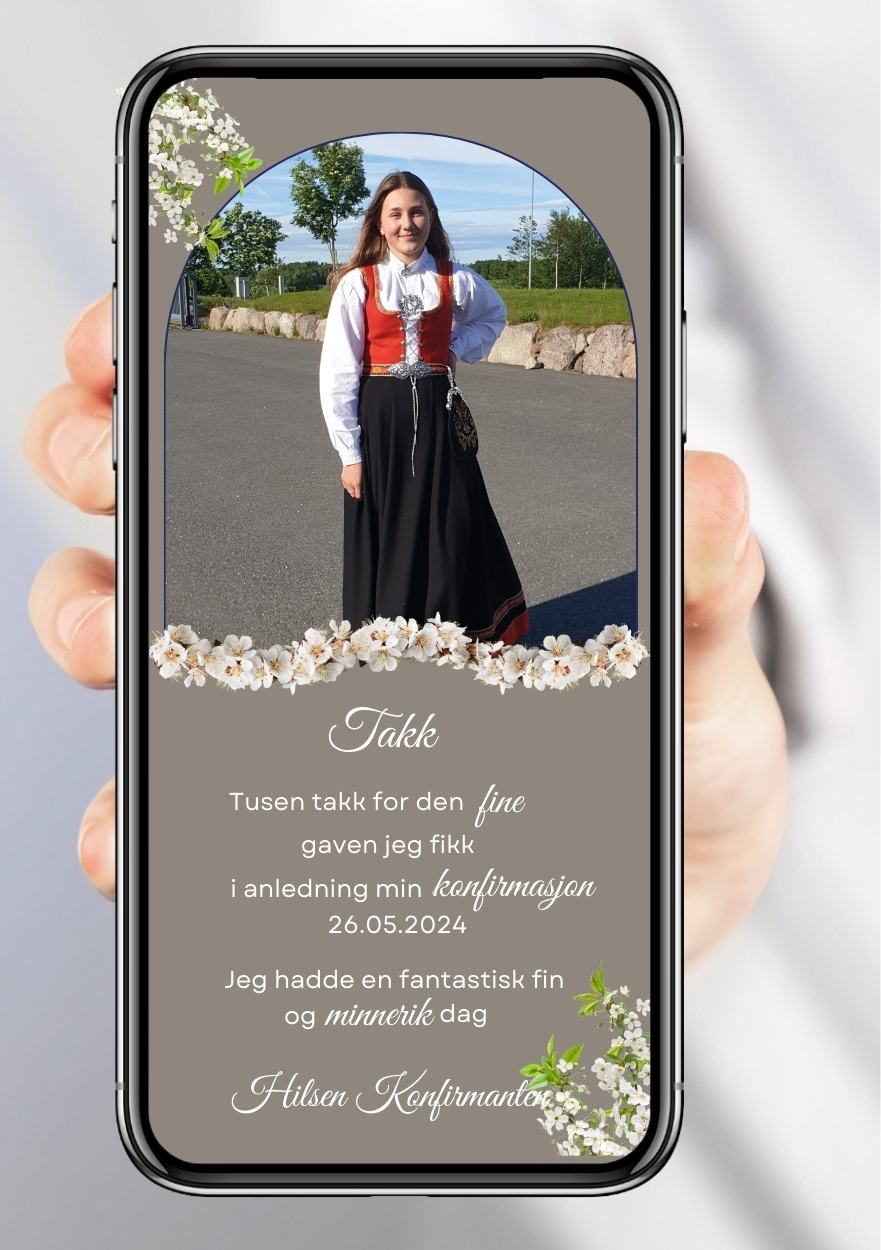 Send familie og venner takkekort på mobilen, etter endt konfirmasjons feiring.