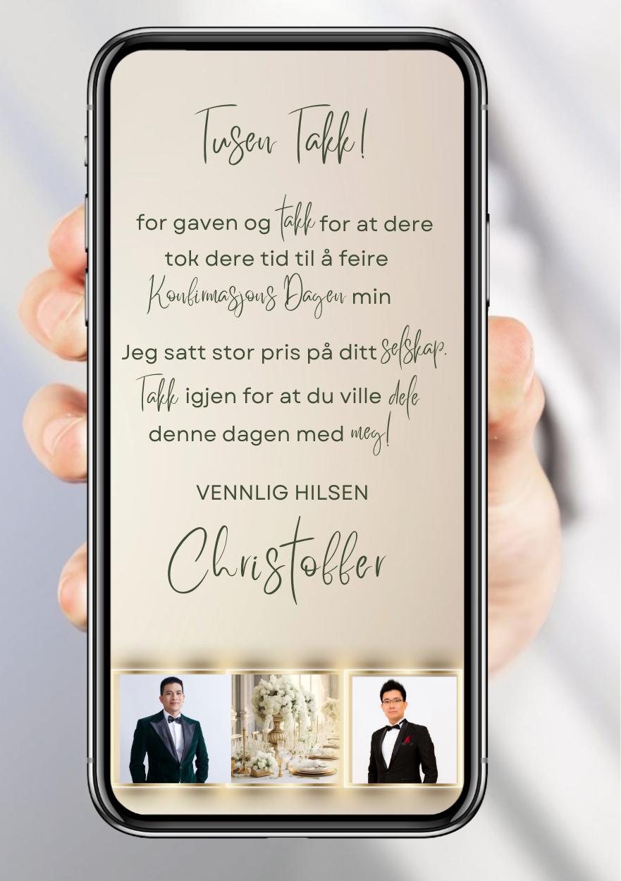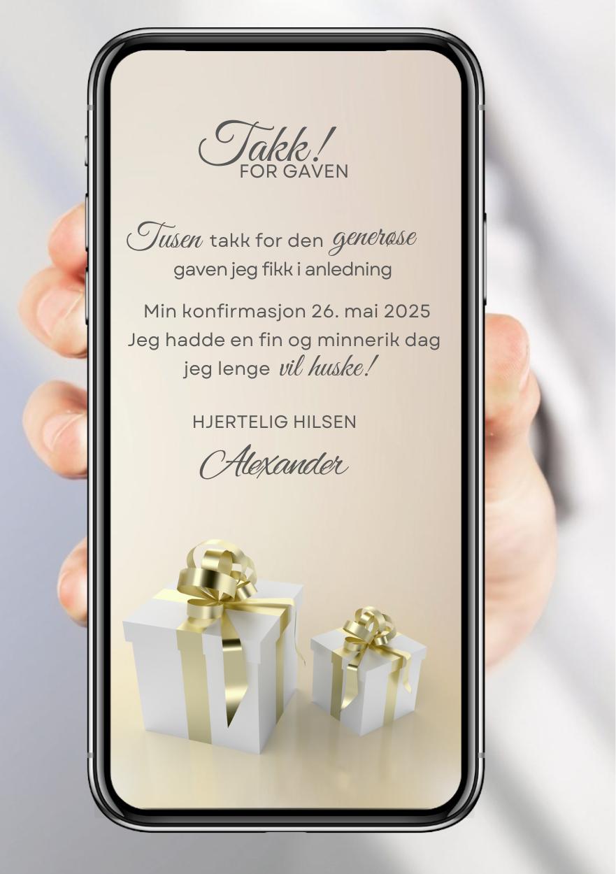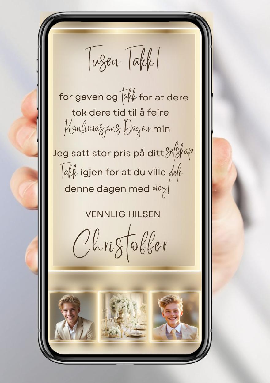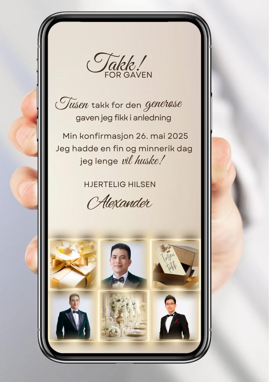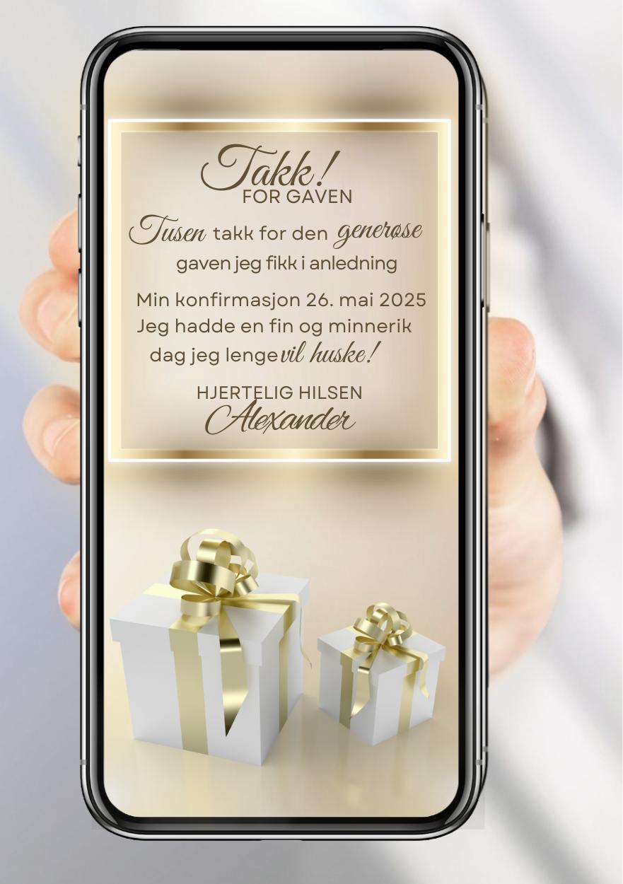 Send familie og venner takkekort på mobilen, etter endt konfirmasjons feiring.
