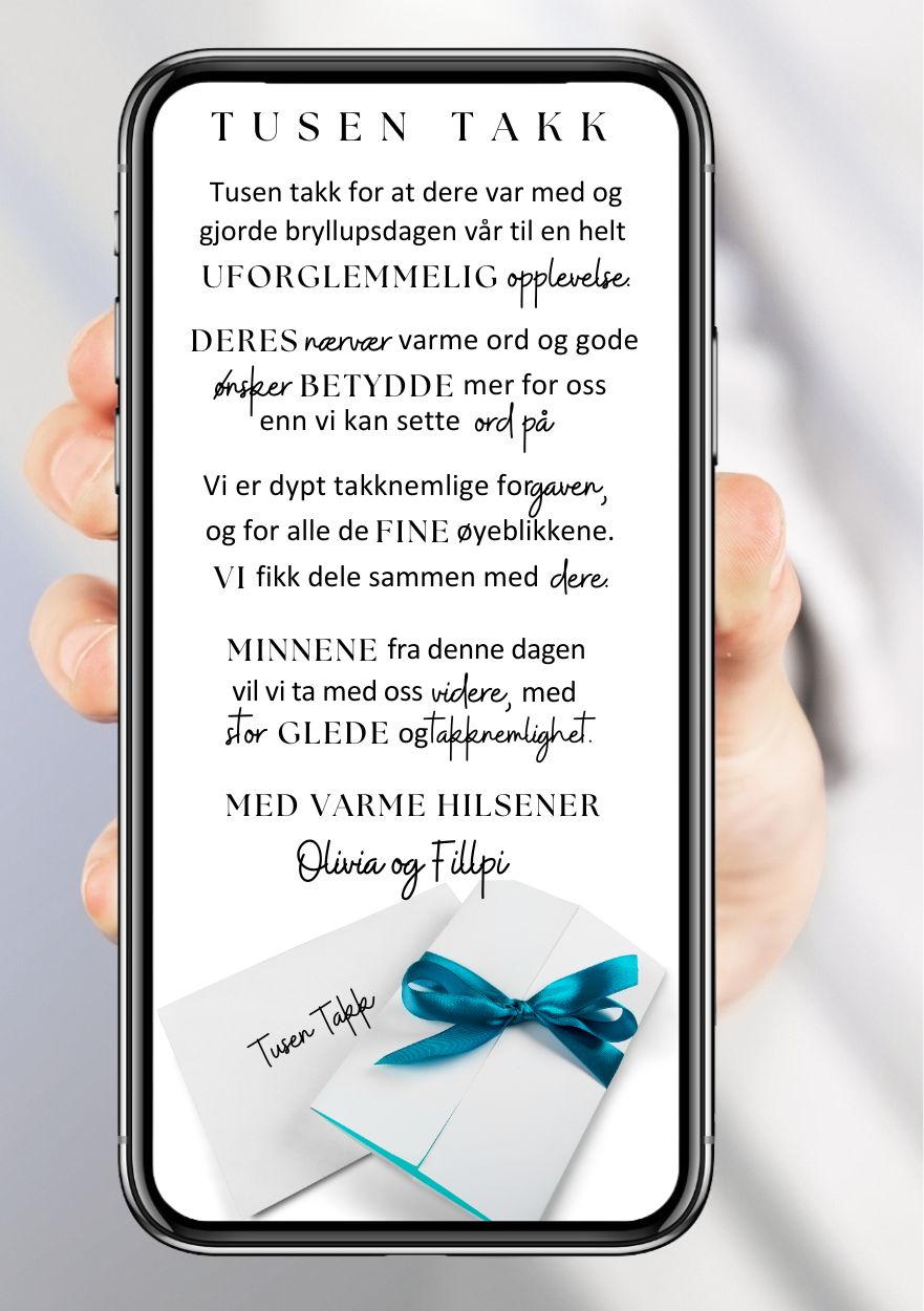 - Thank you card in the chosen size and design with your own text.