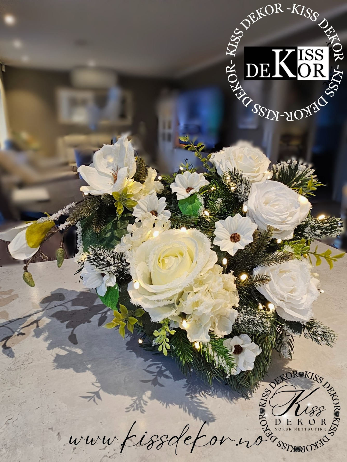 NB: Enkelte varer/pynt kan være vanskelig å få tak i , og vil dermed bli byttet ut med tilsvarende. KISS DEKOR sørger for at varen du bestiller blir mest mulig lik. Etter produksjon vil bilde av det ferdige produktet bli sendt til deg på MMS slik at du kan se produktet før det blir sent til deg :)