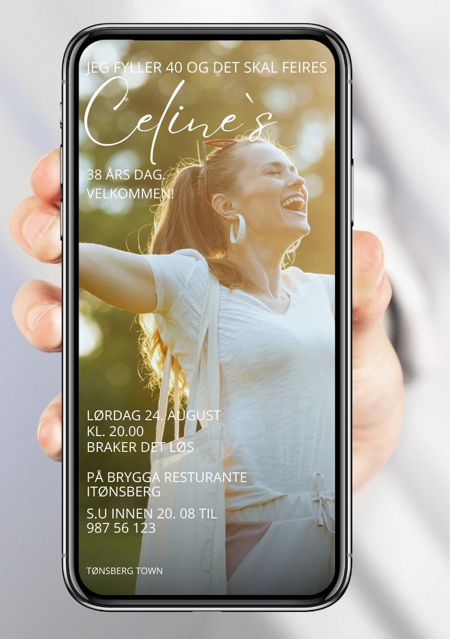 - Bursdagsinvitasjon i valgt størrelse, med tekst og design.